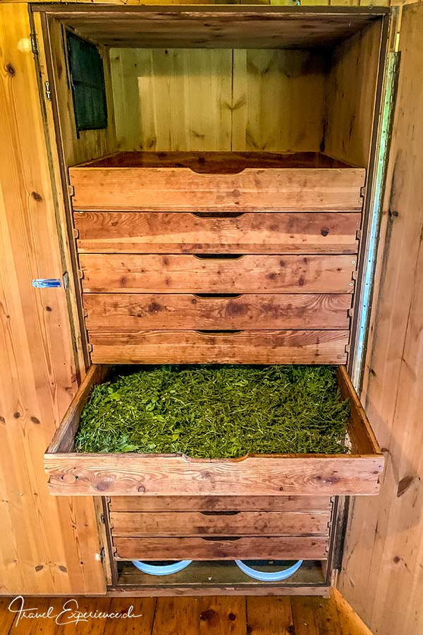 Im prächtigen Bauernhaus des Hintersalcherhofes befindet sich der ausgeklügelte Trocknungsschrank und der kleine Kräuterladen von Birgit. Sie sei früher schon belächelt worden wegen ihrer Biokräuter, aber die Zeiten haben sich geändert. Auch Einheimische kaufen hier ein – nicht nur die Gäste, die auf Kräuterführung sind. Was man hier an Kräutern kaufen kann hält etwa ein Jahr, danach kann man sie immer noch als Räuchermischung verwenden. Die Kräuterwanderung findet jeweils dienstags statt und ist für Inhaber der Wildschönau-Card kostenlos. Diese Gästekarte wird im jeweils gebuchten Hotel kostenlos abgegeben. Damit fährt man auch mit den Bergbahnen, kann das Freibad nutzen und allerlei geführte Wanderungen unternehmen – absolut gratis.