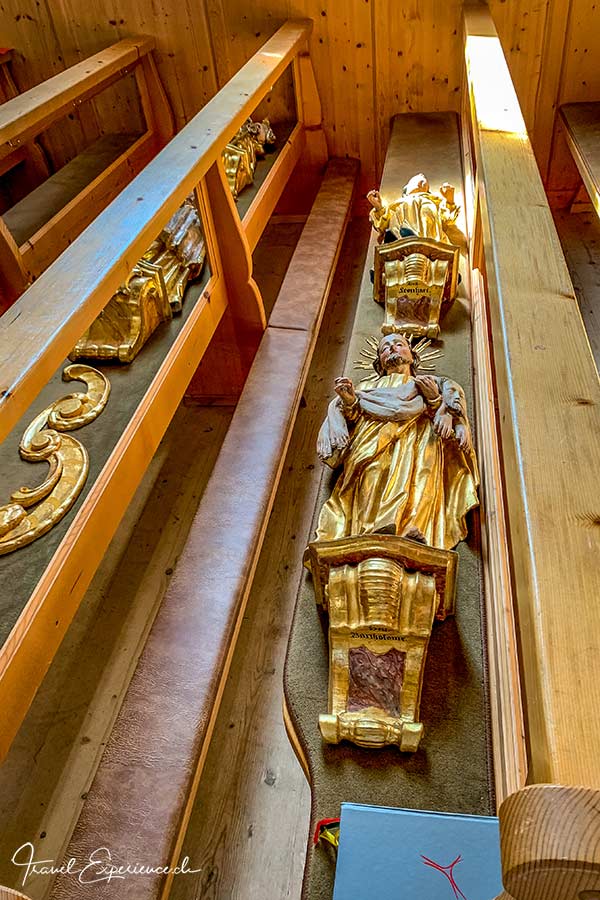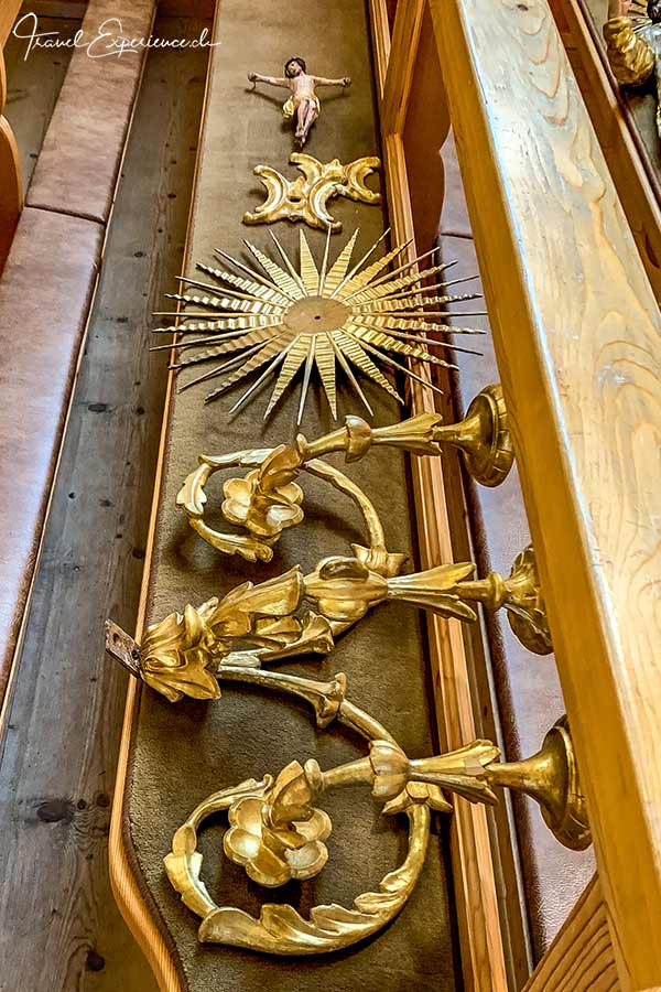 So wundert es nicht, dass in Huberts Geburtshaus schon zu Grossvaters Zeiten geschnitzt wurde. Vor 25 Jahren verwandelte er es in ein Museum, an das er inzwischen x-mal angebaut hat. Er selber wohnt mit seiner Familie ebenfalls in diesem Haus, das 376 Fenster und 75 Türen hat, 30 verschiedene Holzböden in 59 Räumen auf 6 Etagen… Und seit kurzem gibt es auch einen Lift. Nein, der ist nicht aus Holz, aber natürlich mit Holz ummantelt.