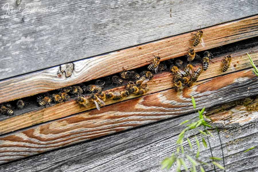 Nach den drei Ks (Käse, Kräuter und Krautinger) haben wir noch zwei Hs auf Lager: Honig und Holz. Jeweils im Frühling und Herbst geht es auf geführter Wanderung zum Bio-Imker Jakob Hölzl und seiner Frau Veronika auf dem Sonnleitenhof. Den Bauernhof auf 1143 m ü. M. betreiben sie seit 1993. Mit 20 Bienenvölkern haben sie 1995 mit der Imkerei begonnen und 2008 auf bio umgestellt. Heute pflegen sie 50 Völker von denen sie – je nach Wetter – 500 bis 1000 Kilogramm Honig bekommen. Lagebedingt gibt es viel Alpenrosenhonig, eine echte Spezialität, die man ab Hof oder im Bauernladl in Oberau kaufen kann.